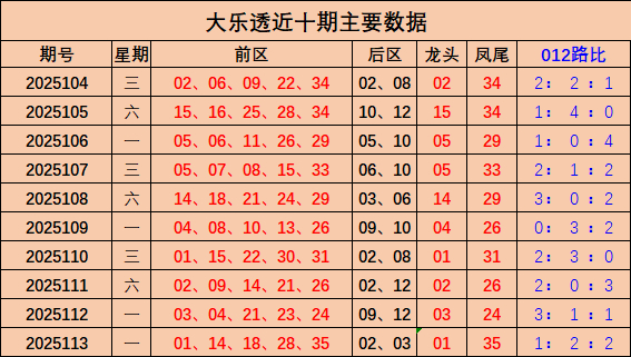 大乐透上期开奖号为:01 14 18 28 35,后区02 03;012路比1:2:2,龙头开出01,凤尾开出35
